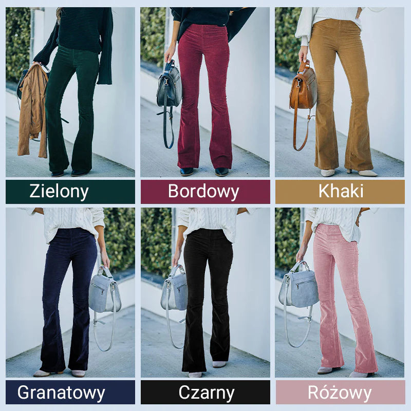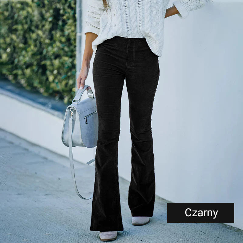 Spodnie z wysokim stanem i elastyczną talią z mikro sztruksu
